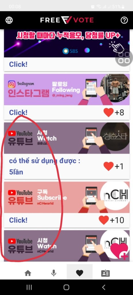 Sau khi đăng nhập xong thì các bạn làm nhiệm vụ mà app yêu cầu sẽ nhận được tim
