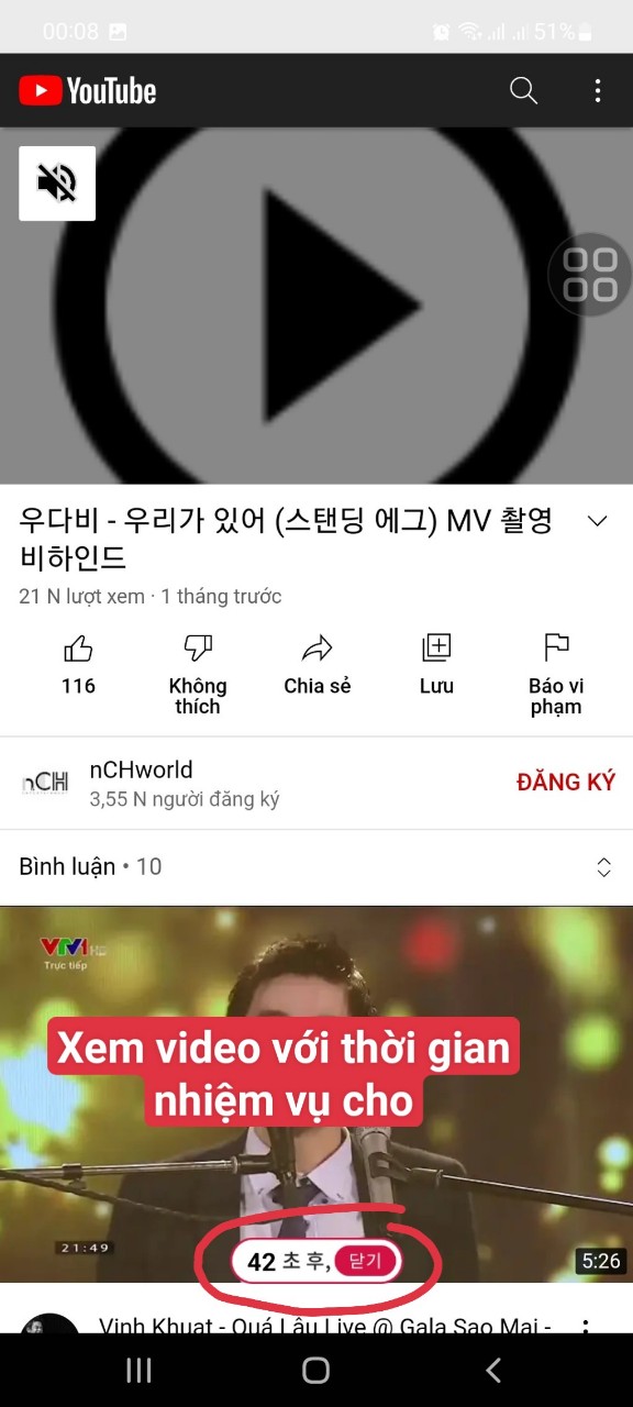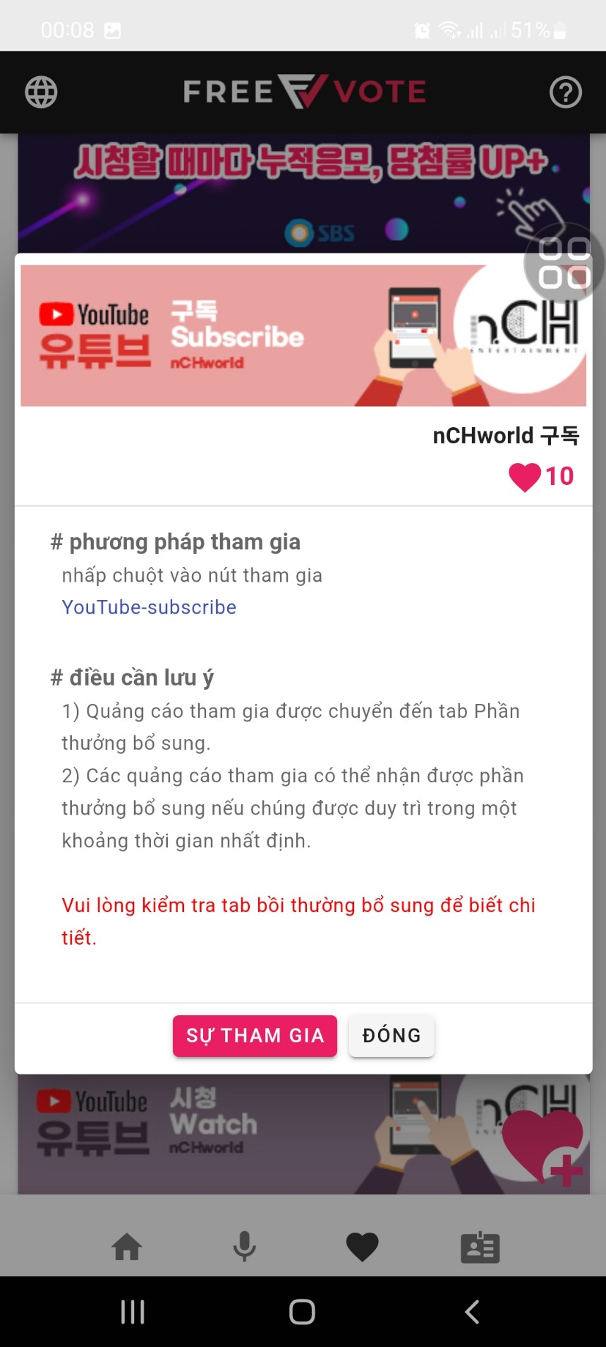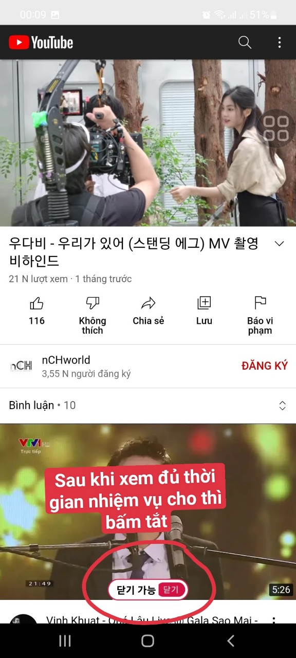 Chọn nhiệm vụ –> Tham gia ( nút hồng ) –> xem video —> tắt video nhận thưởng